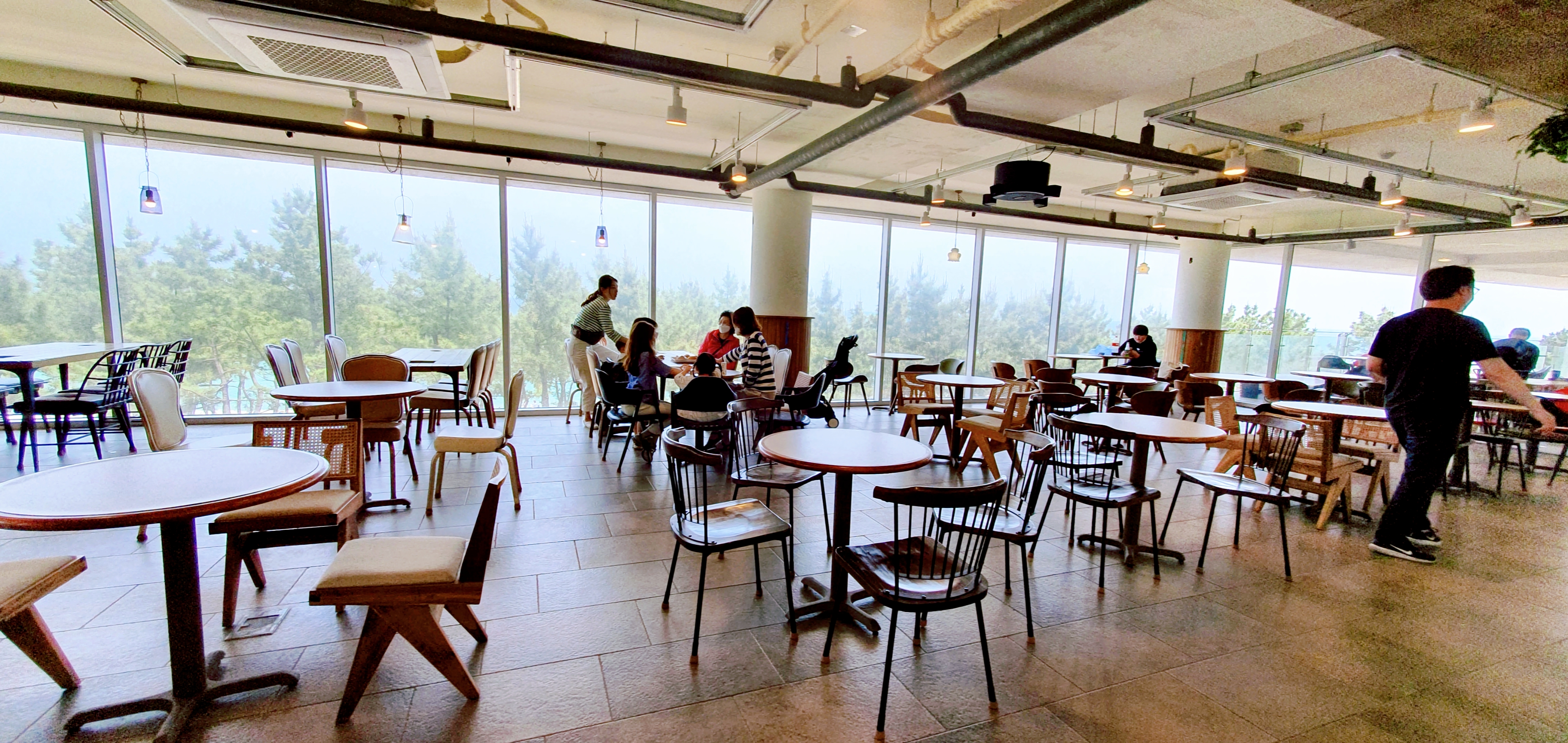 고성 가볼만한곳 바다정원 카페 통유리로 되어있는 다른 층.. 층마다 콘셉트가 조금씩 다르면서 비슷한 느낌을 주는데통유리로 되어있어 고성 바다를 한눈에 볼 수 있다.